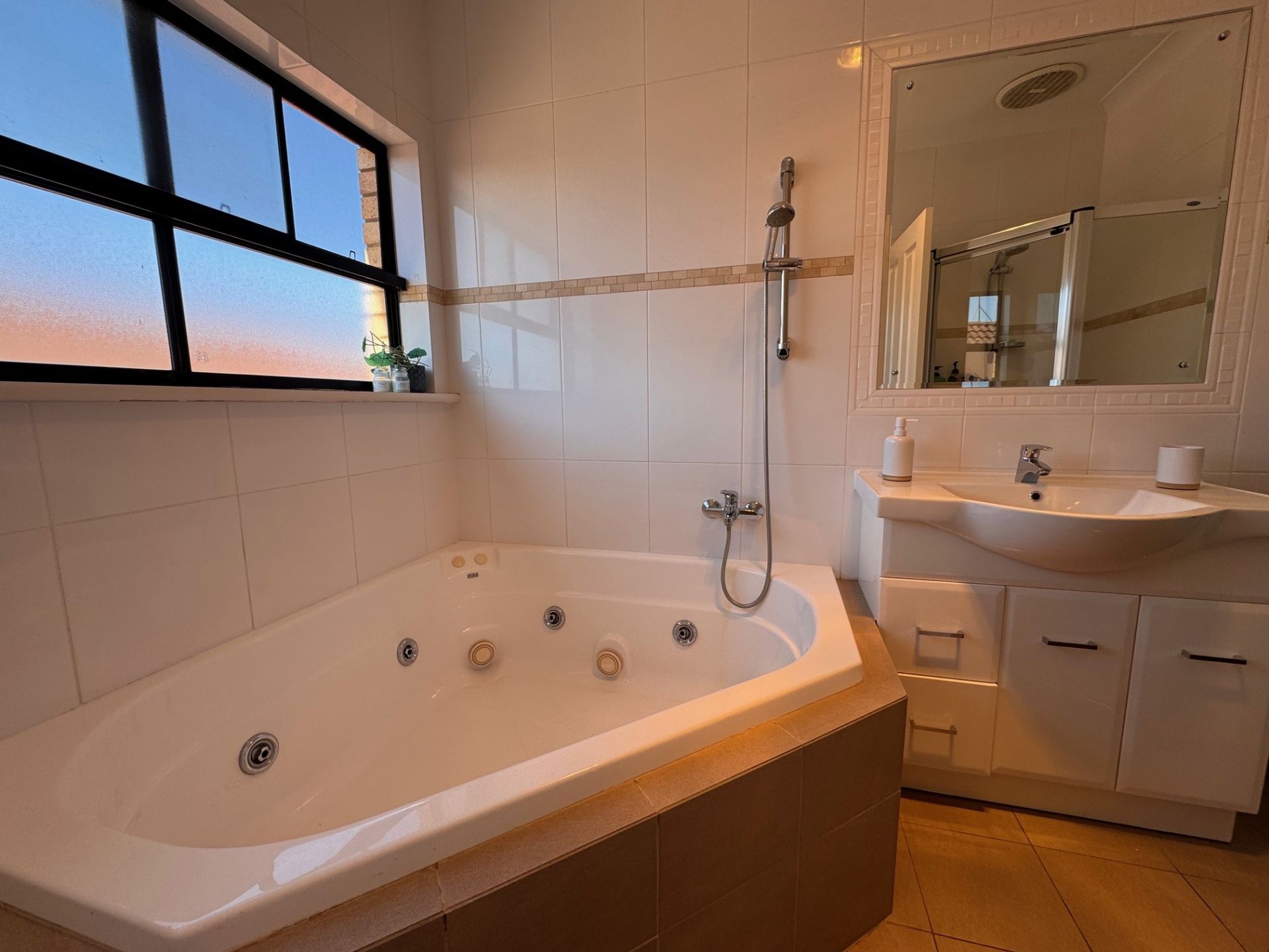 • Immaculate three-way main bathroom with corner shower, spa bath and separate toilet
