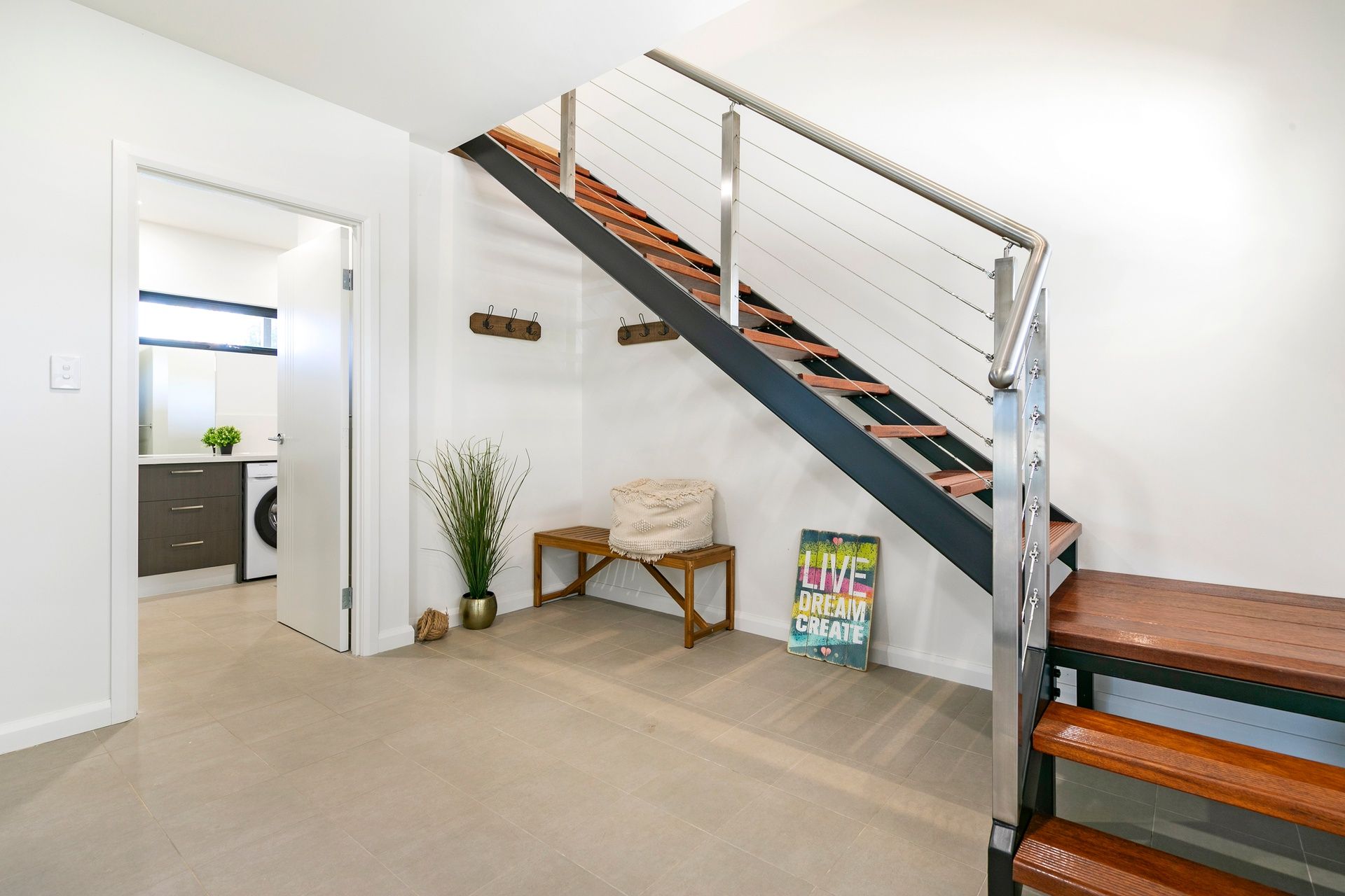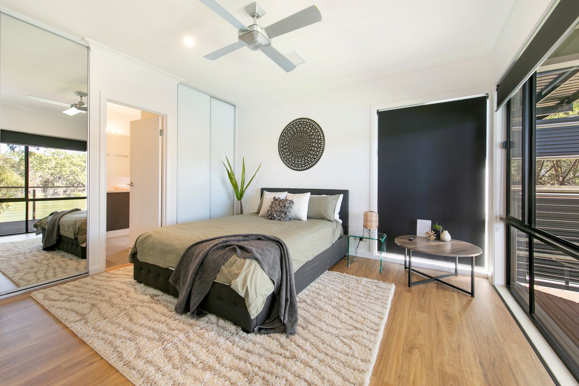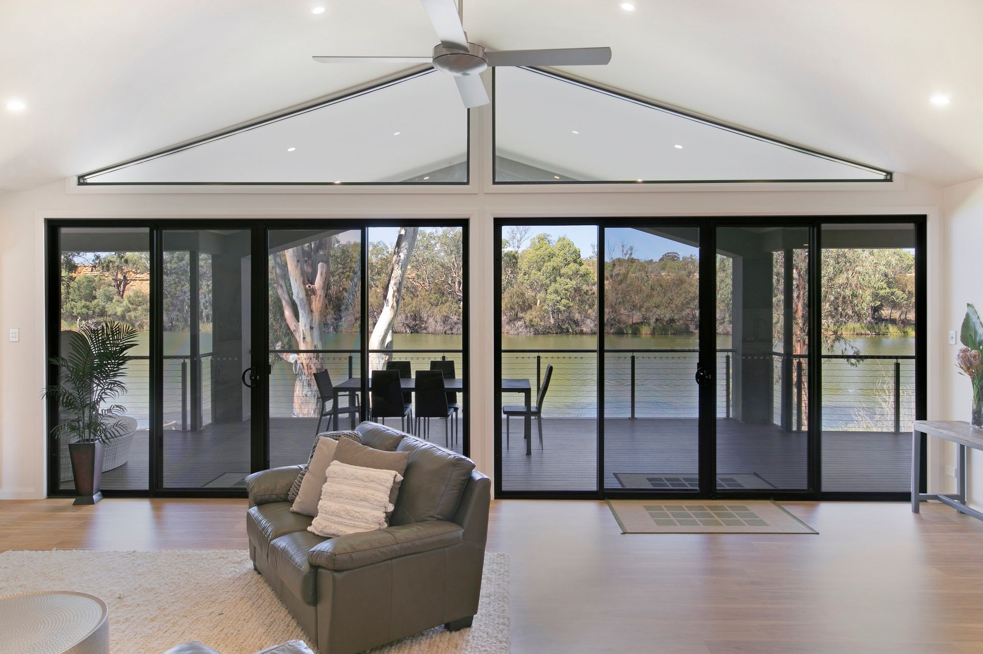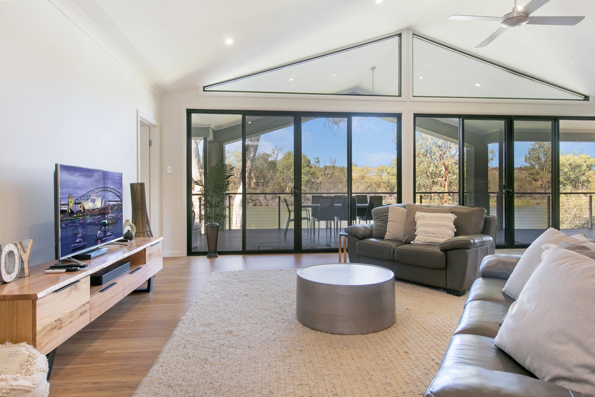 The soft neutral décor and the earthly overtones of timber blend this home into its natural habitat.