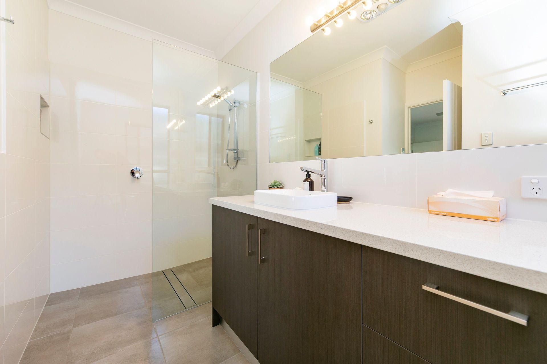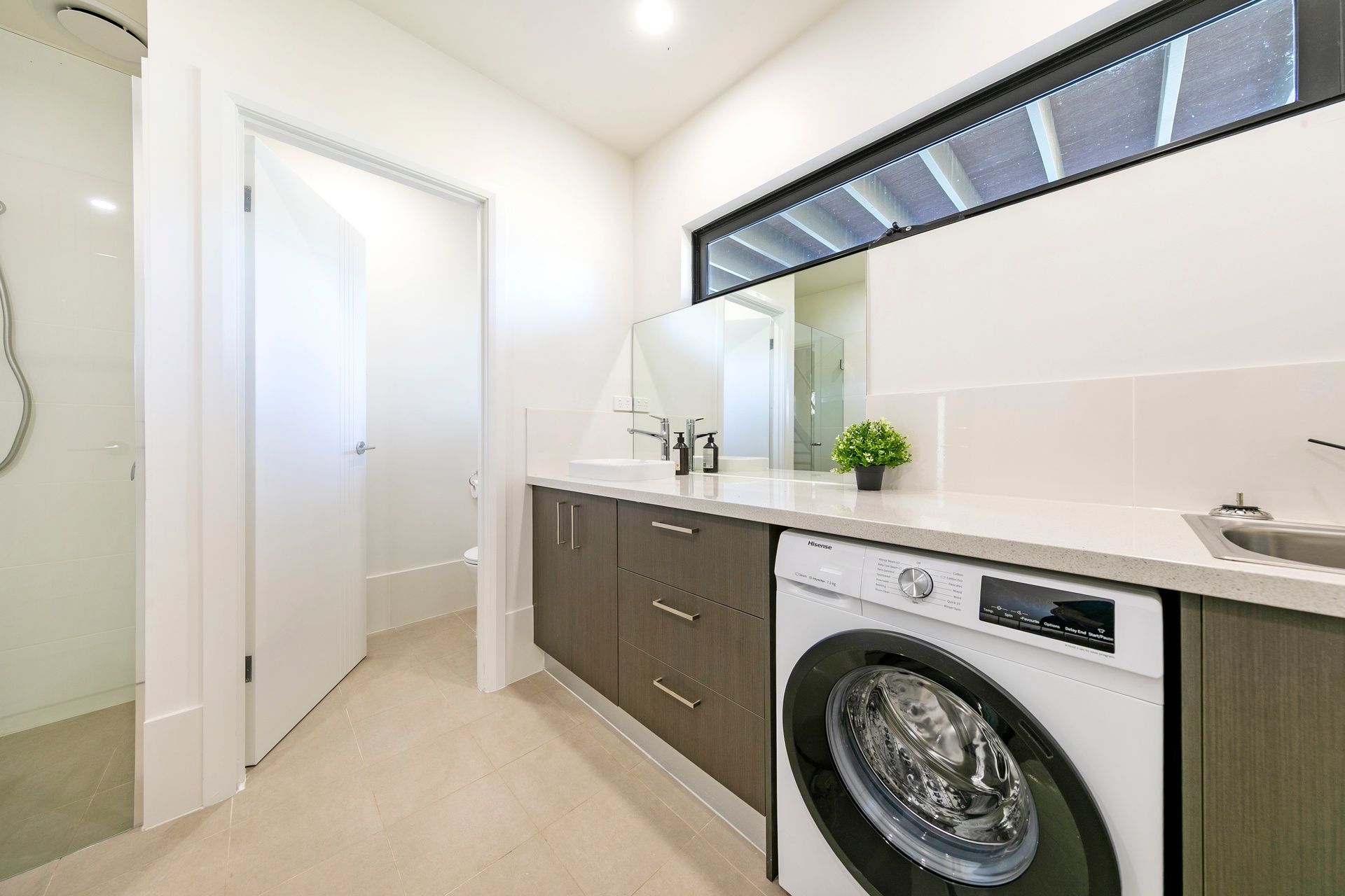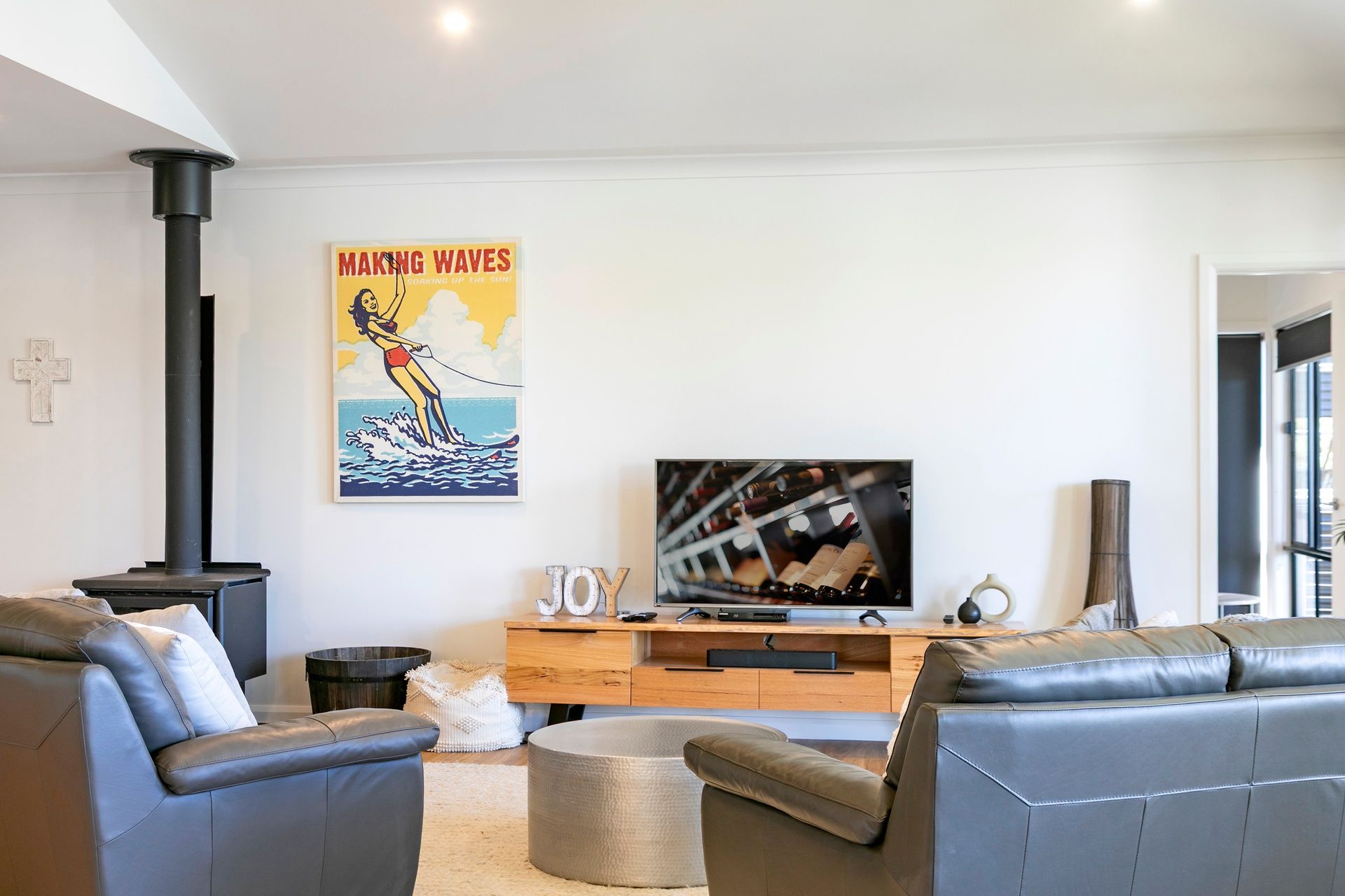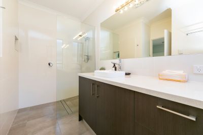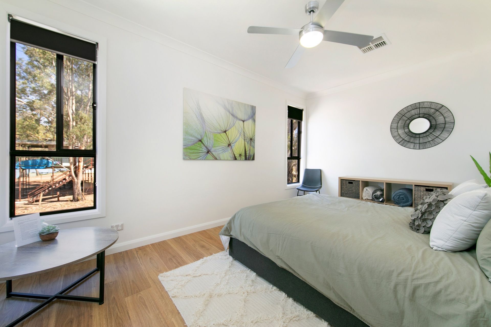 The soft neutral décor and the earthly overtones of timber blend this home into its natural habitat.