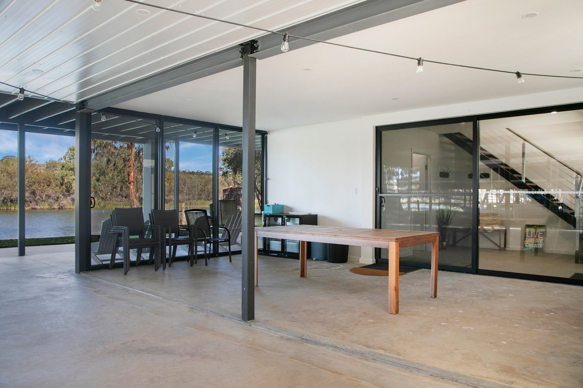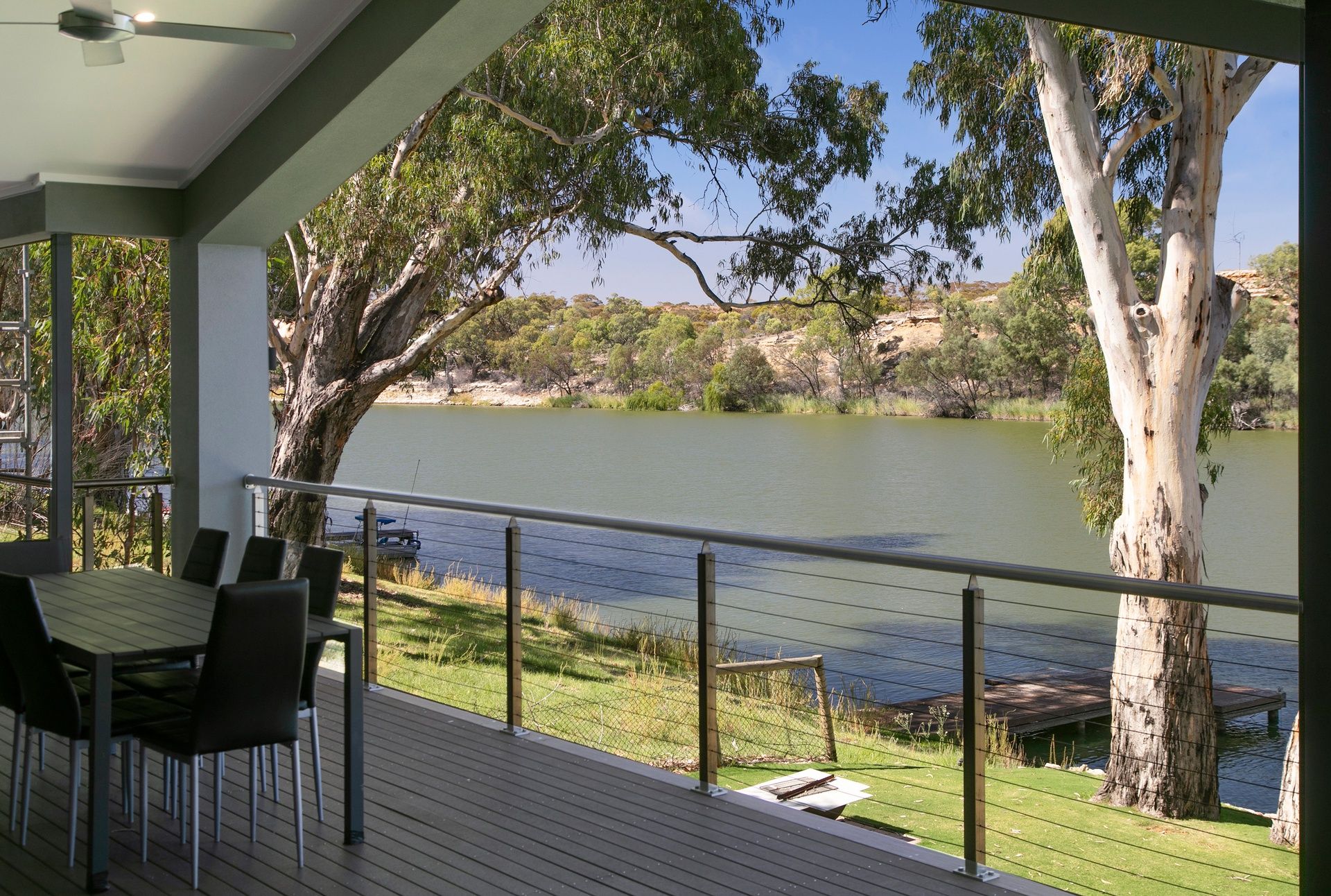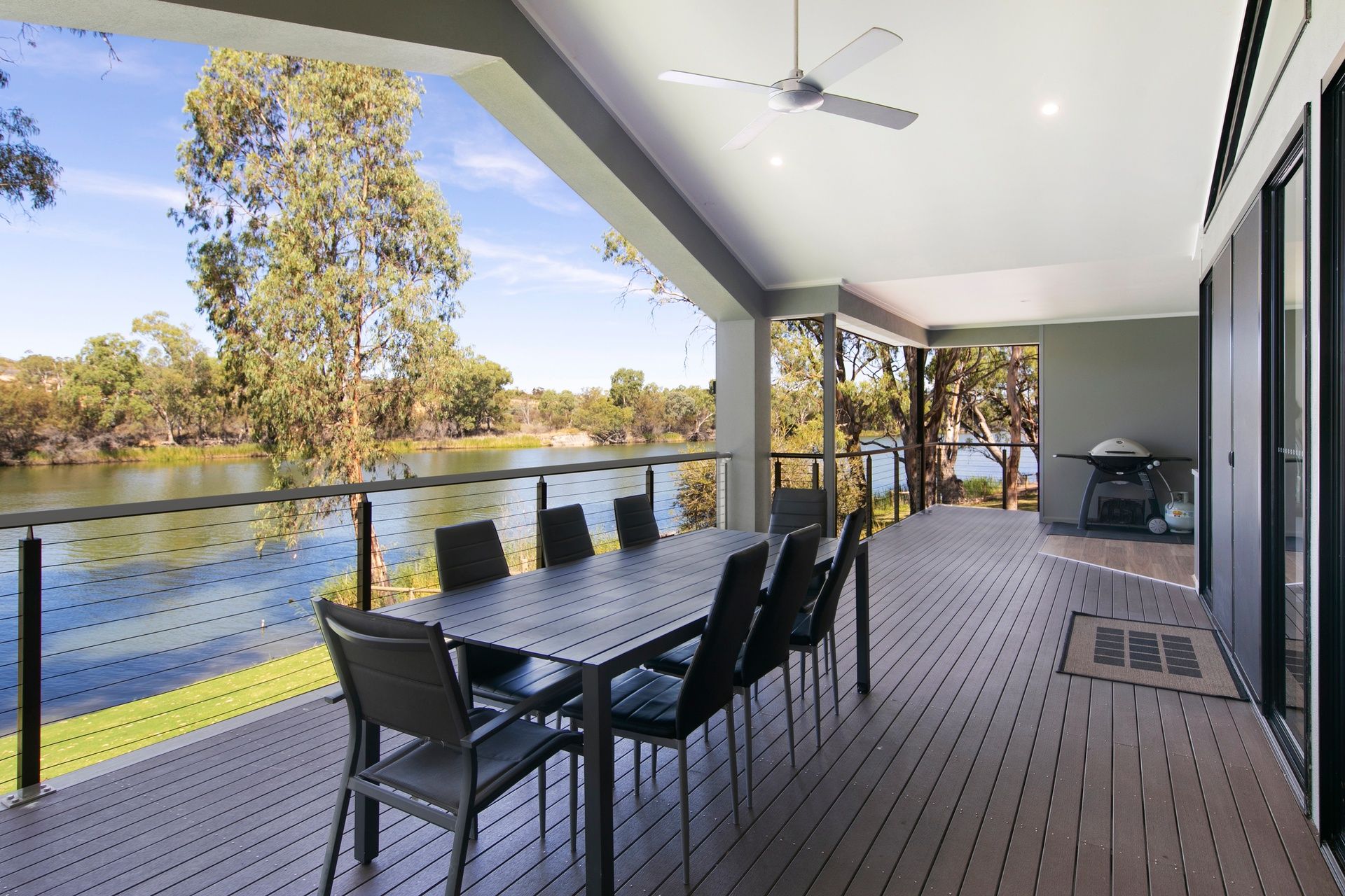 6 bedrooms with magnificent alfresco dining overlooking the river with access from the huge family, lounge/dining room with cathedral ceilings.